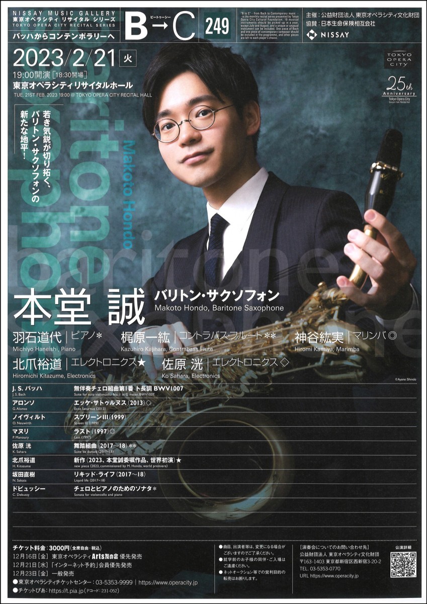 東京オペラシティ リサイタル・シリーズ「B→C(ビートゥーシー):バッハからコンテンポラリーヘ」[249]本堂誠 ほんどうまこと バリトン・サクソフォン