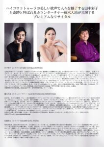 田中彩子(ソプラノ) 藤木大地(カウンターテナー) 佐藤卓史(ピアノ)