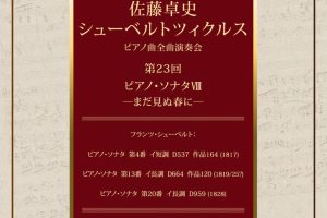 シューベルト国際コンクール優勝の佐藤卓史が2014年から展開しているピアノ関連器楽曲全曲演奏プロジェクト「佐藤卓史シューベルトツィクルス」。シューベルトの美しい旋律に包まれるひとときを、ぜひ会場でお楽しみください。