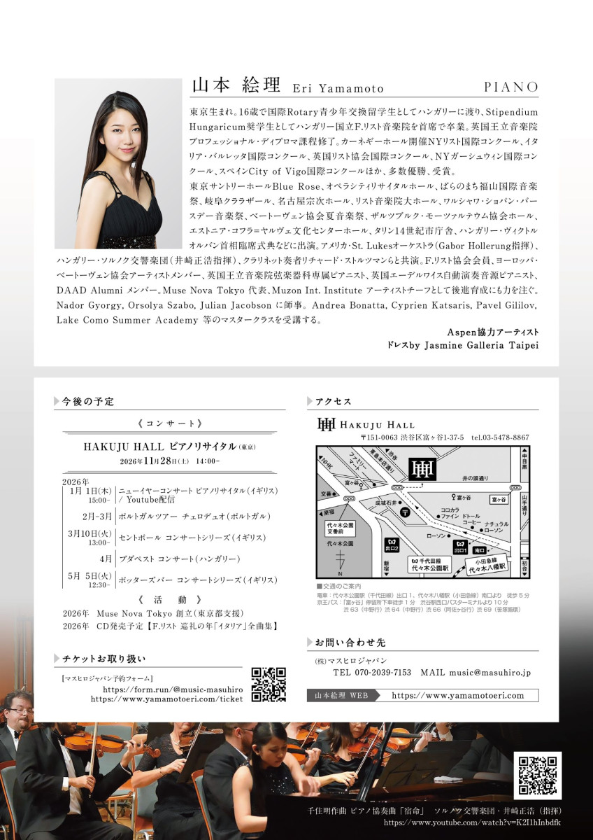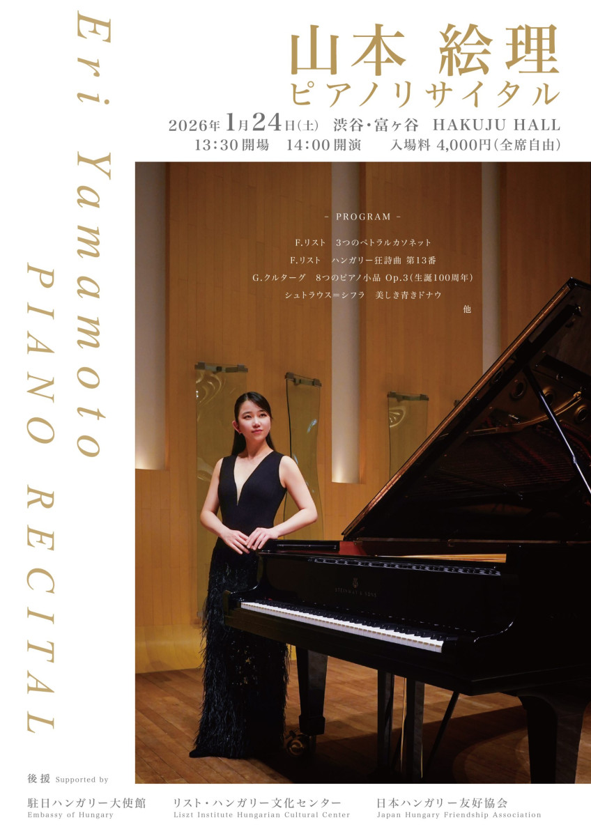 2026年1月24日、東京都渋谷の Hakuju Hall にてリサイタルを開催いたします。