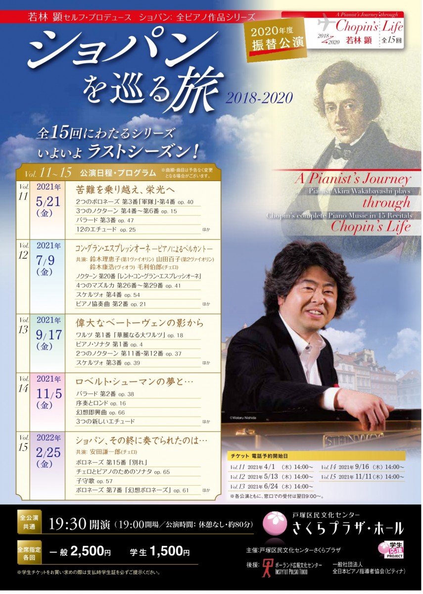 若林 顕 セルフ・プロデュース ショパン:全ピアノ作品シリーズ ショパンを巡る旅 2018-2020【2020年度振替公演】