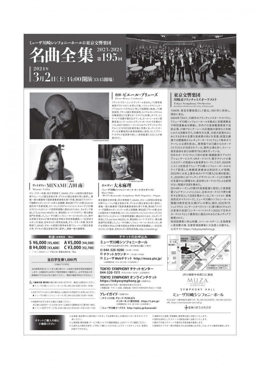 フランスのアンサンブル・アンテルコンタンポランの音楽監督に就任する注目の指揮者ピエール・ブリューズが贈るフレンチ・プログラムで、MINAMIが名曲サン=サーンスのヴァイオリン協奏曲第3番を弾く!